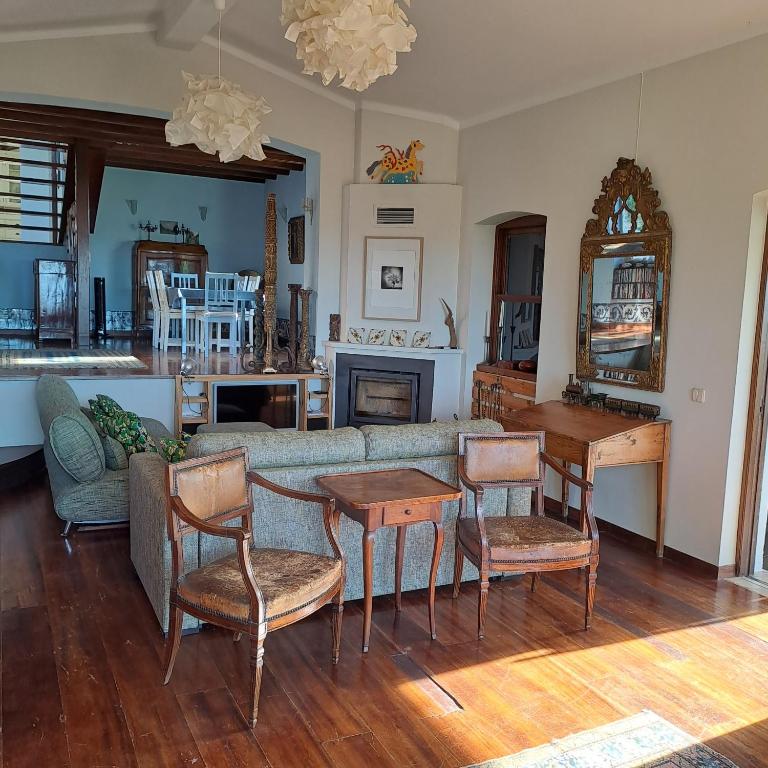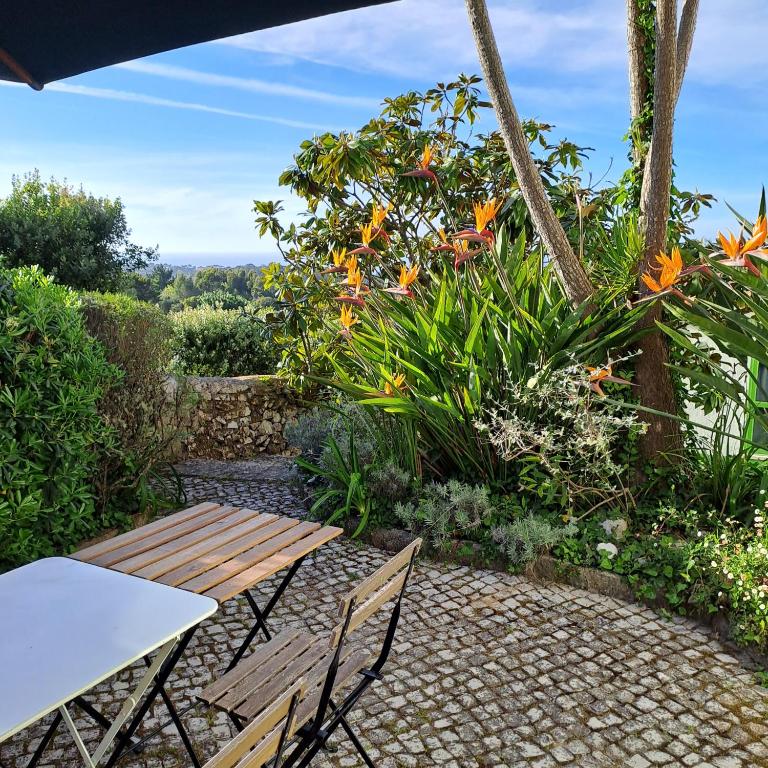 A pleasant floral scent greets you in this charming hillside house, with sweeping views of the valleys and the Atlantic Ocean. All rooms have stunning views. The garden is ideal for breakfast or yoga, and the terrace offers magnificent views of Praia das Maçãs beach. The house is elegant, filled with books and music, with comfortable beds and a fully equipped kitchen. Perfect for exploring Sintra, Cascais and nearby beaches, with excellent Wi-Fi and complete tranquility.