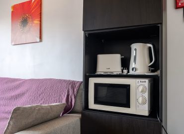 O sofá pode ser transformado em cama. Dessa forma podemos receber um máximo de 3 hóspedes.