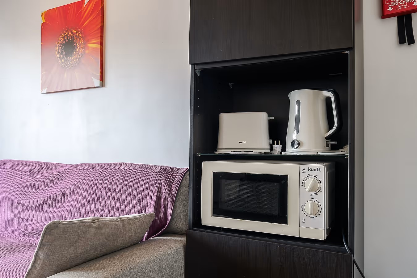 O sofá pode ser transformado em cama. Dessa forma podemos receber um máximo de 3 hóspedes.